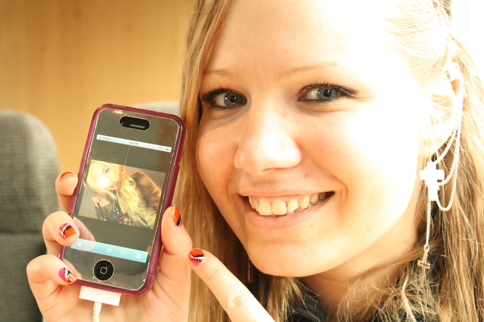 En glad tjej när hon har fått sin efterlängtade iphone :)