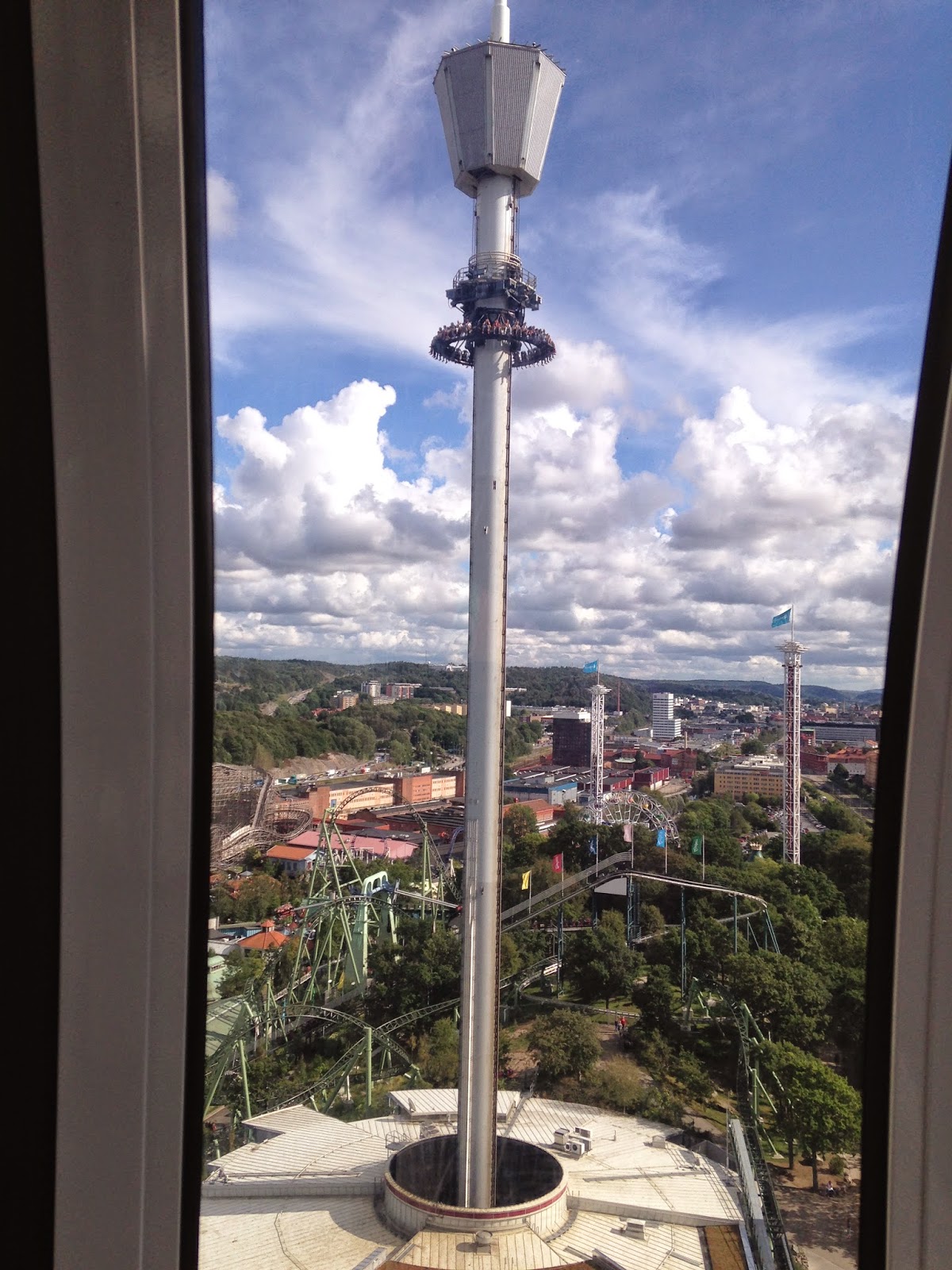 Jag är fruktansvärt höjdrädd, och har ALDRIG åkt Uppskjutet eller höjdskräcken, uppswingen och atmosfear är bara ett stort NEJ! Men igår!!! Adrenalinet var på 10000 och att få kunna åka något med E för första gången...JA! Man vill ju åka med någon som man känner sig säker med, och okej att man inte sitter på varandras knän typ men man har den andra personen bredvid sig som stöd om man nu typ skulle få panik panik....Och vet ni vad...Jag åkte uppskjutet!!!! SVIIINKUL!!!!